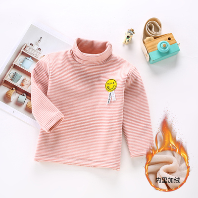 女童加绒打底衫冬季翻领t恤加厚保暖宝宝长袖上衣女洋气儿童时尚