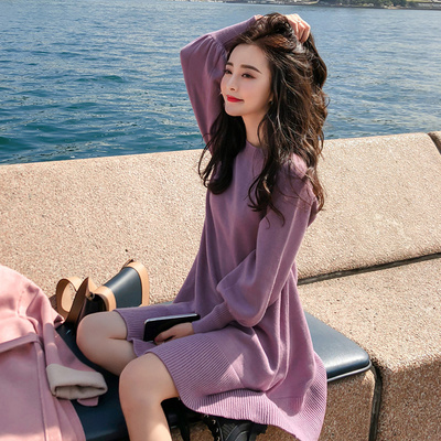 2019秋冬新款针织毛绒衣打底连衣裙女学生韩版宽松中长款仙女裙子
