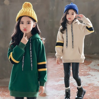 2019新款女童秋冬装卫衣韩版加绒中长款上衣洋气女装潮