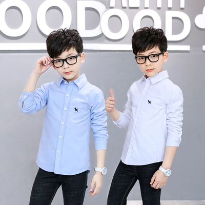 男童加绒衬衣纯棉加厚秋冬上衣中大童男孩长袖白色衬衫保暖小学生