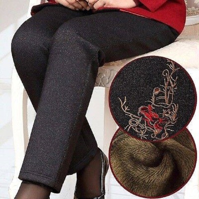 秋冬新款中老年加绒裤子女直筒弹力大码黑色休闲裤中年女士妈妈裤