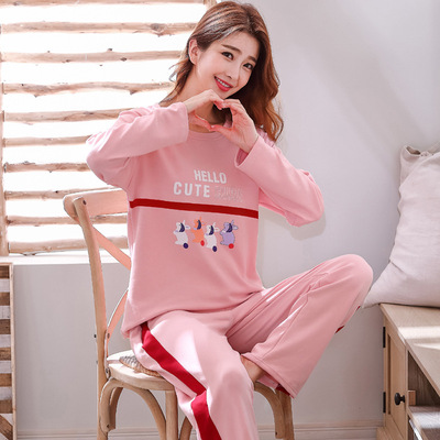 精梳棉睡衣女秋新品长袖睡衣韩版女士潮流家居服两件套装纯棉套装