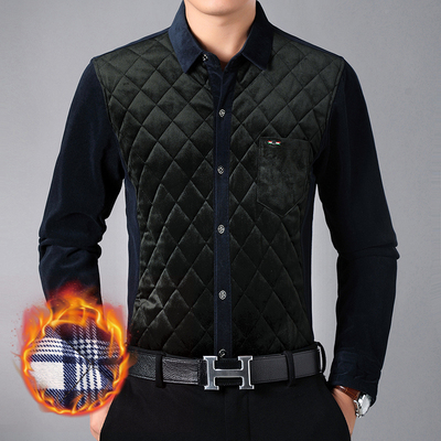 中年爸爸装夹棉保暖衬衣加厚加绒秋冬装中老年人纯棉长袖衬衫男士