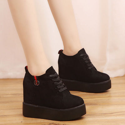 P30厚底内增高女鞋加绒秋冬松糕系带小皮鞋英伦复古浅口休闲单鞋