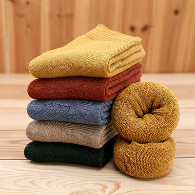 袜子女袜冬季加绒加厚保暖毛圈袜日系纯色女士中筒袜毛巾袜